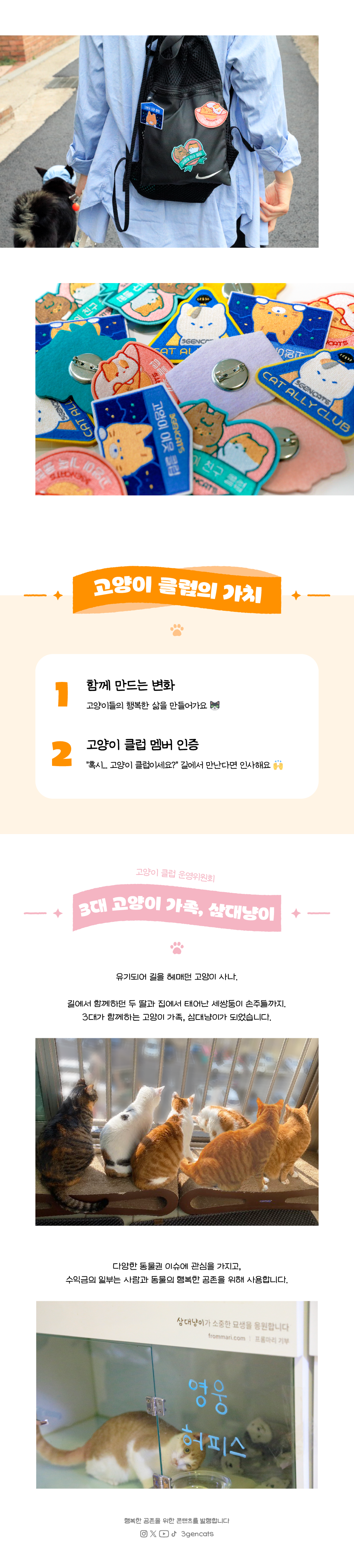 / [수익금 전액 기부] 삼대냥이 고양이 클럽 와펜 (4종)